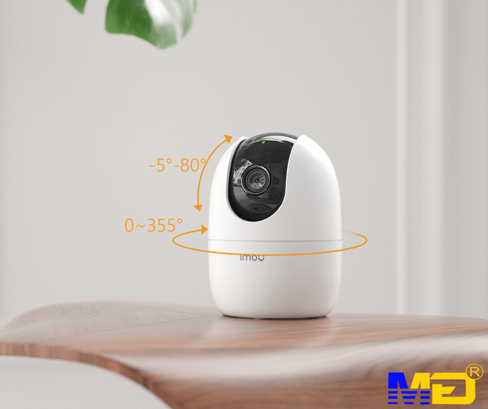 • Ống kính cố đinh 3.6mm, góc nhìn 83°, quay quét ngang 355°, quay quét dọc 5° 80°.